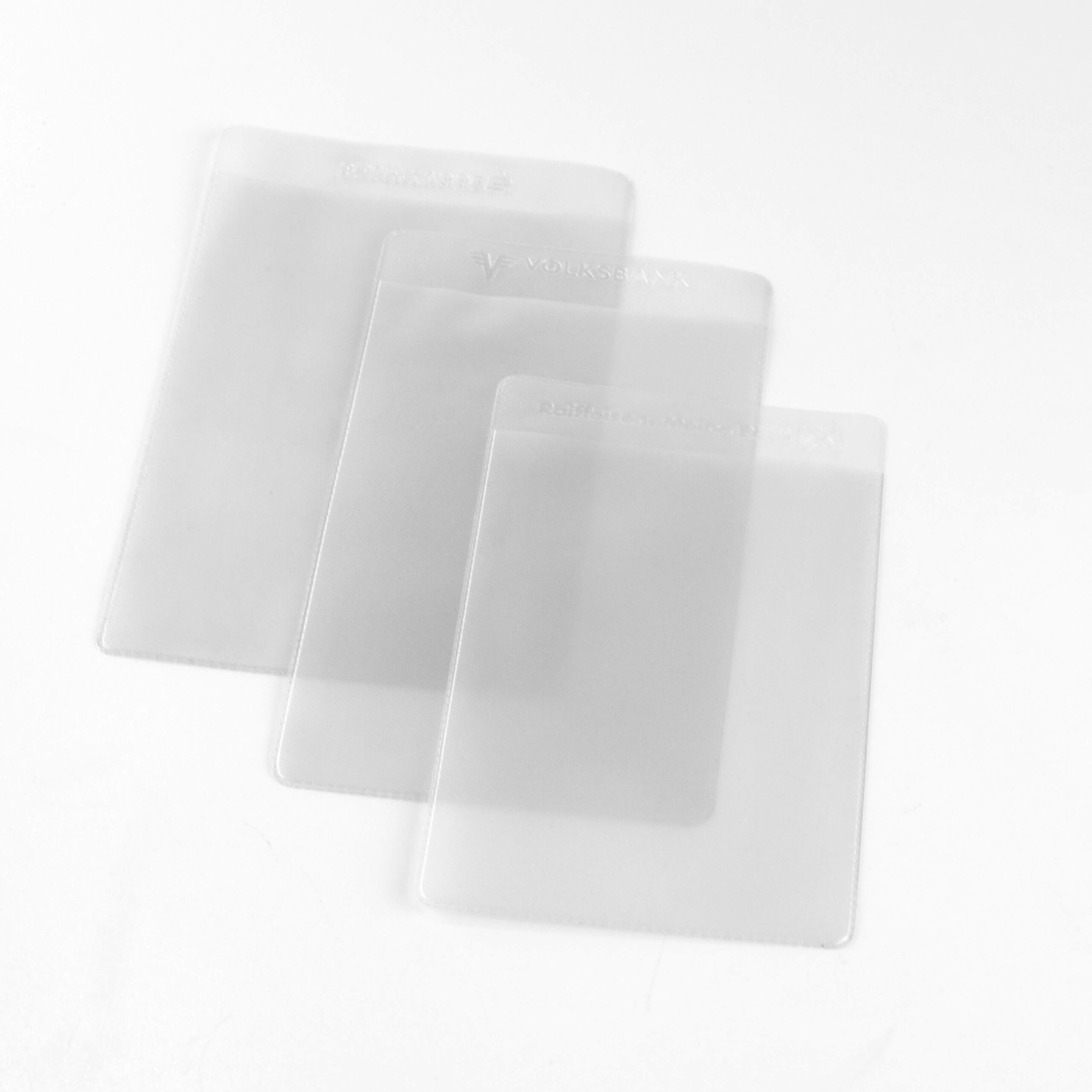 Hart-PVC-Variante mit seitlicher Daumenstanzung oder rechteckiger Ausnehmung für einfaches Entnehmen der Karte